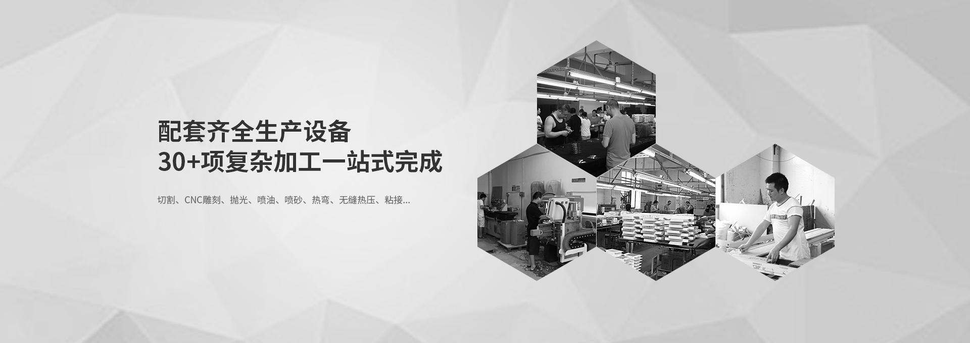 可提供切割、CNC雕刻、拋光、噴油、噴砂、熱彎、無縫熱壓、粘接等數十種加工工藝+客戶